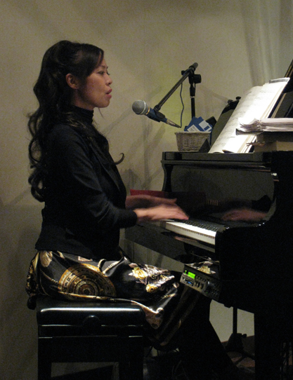 グランドピアノを弾き語るゆりさん、